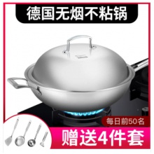 德国304不锈钢炒锅无油烟炒菜锅无涂层不...